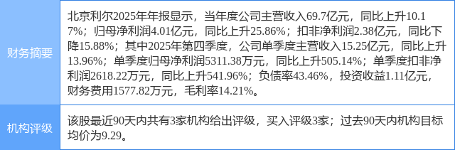 2026年4月13日,东兴证券研究员赵军胜发布了对北京利尔的研报《传统业务稳健发展,新兴业务落地拓新空间》,该研报对北京利尔给出“买入”评级。研报中预计公司2026-2028年归母净利润分别为4.64、5.45和6.60亿元,对应EPS分别为0.39、0.46和0.55元。公司耐火材料传统业务综合竞争优势明显,抗风险能力强,逆势提升市占率。随着公司新兴业务战略的逐步落地打开公司发展新空间,维持公司“强烈推荐”评级。证券之星数据中心根据近三年发布的研报数据计算,该研报作者对此股的盈利预测准确度为74.01%。