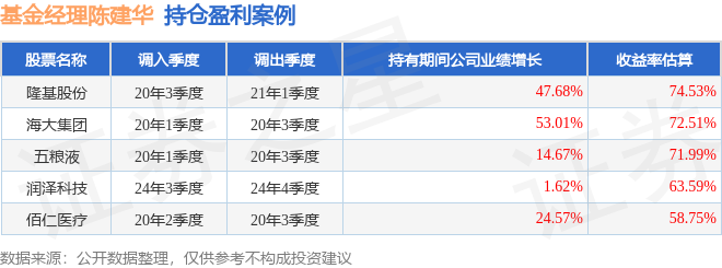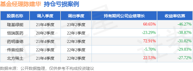 重仓股调仓示例详解:1、隆基股份(601012)调仓案例:陈建华管理的国联安鑫干混合A基金在20年3季度买入隆基股份,在持有2个季度后在21年1季度卖出。持有期间的估算收益率为74.53%,持有期间隆基股份在2020年到2021年的年报营业总收入增幅达47.68%。2、海大集团(002311)调仓案例:陈建华管理的国联安鑫干混合A基金在20年1季度买入海大集团,在持有2个季度后在20年3季度卖出。持有期间的估算收益率为72.51%,持有期间海大集团在2019年到2020年的年报归属净利润增幅达53.01%。3、隆基绿能(601012)调仓案例:陈建华管理的国联安鑫隆混合A基金在21年4季度买入隆基绿能,在持有1年又2个季度后在23年2季度卖出。持有期间的估算收益率为-46.27%,持有期间隆基绿能在2021年到2023年的年报营业总收入增幅达60.65%。