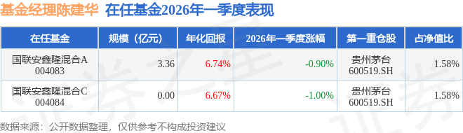 证券之星消息,截止2026年一季度末,基金经理陈建华旗下共管理2只基金,本季度表现最佳的为国联安鑫隆混合A(004083),季度净值跌0.9%。