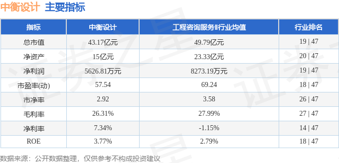 中衡设计主要指标及行业内排名如下: