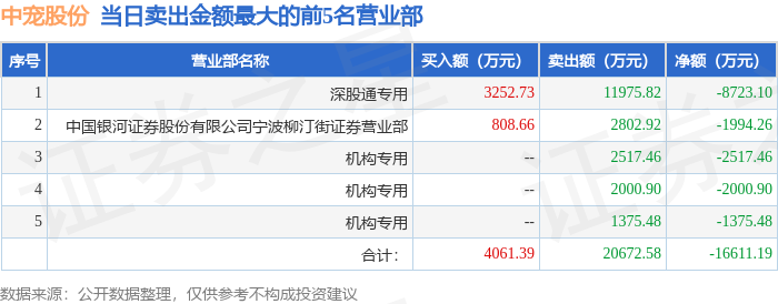 证券之星消息,沪深交易所2026年4月24日公布的交易公开信息显示,中宠股份(002891)因日跌幅偏离值达到7%的前5只证券登上龙虎榜。此次是近5个交易日内第1次上榜。