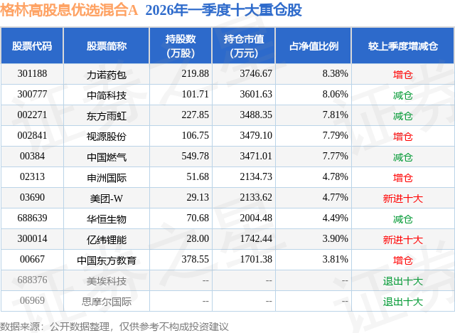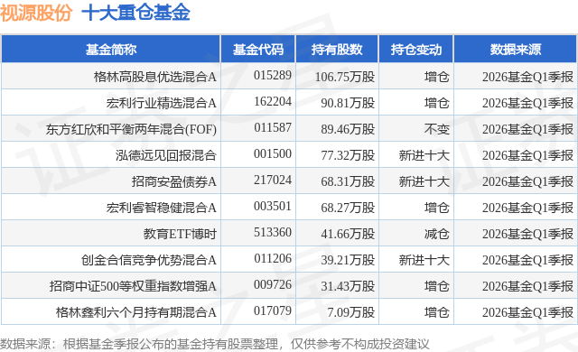 根据2026基金Q1季报公募基金重仓股数据,重仓该股的公募基金共13家,其中持有数量最多的公募基金为格林基金的格林高股息优选混合A。格林高股息优选混合A目前规模为1.17亿元,最新净值1.7464(4月22日),较上一交易日上涨0.31%,近一年上涨25.12%。该公募基金现任基金经理为刘赞。刘赞在任的基金产品包括:格林碳中和主题混合A,管理时间为2023年1月19日至今,期间收益率为72.87%;格林鑫利六个月持有期混合A,管理时间为2023年3月20日至今,期间收益率为23.03%;格林港股通臻选混合A,管理时间为2024年4月22日至今,期间收益率为27.35%。