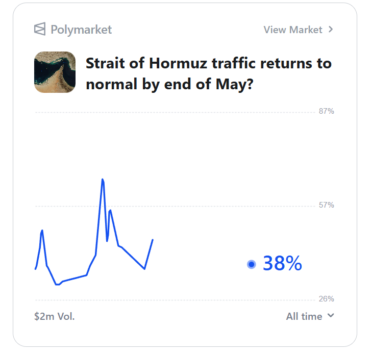 博彩市场目前给出的概率显示,霍尔木兹海峡在5月中旬前达成近期解决方案的可能性极低(仅约十几个百分点)。因此,高盛认为做多2026年12月布伦特原油期货仍是当前最优方式。