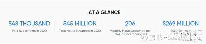 所以体现在数据上,收入和用户均快速增长中,截止2020年底,Fubo有近55万付费订阅用户(其中20年H2增加净增加了26万订户),月度ARPU是69.19美元,20年总收入2.68亿美元(YoY+83%)