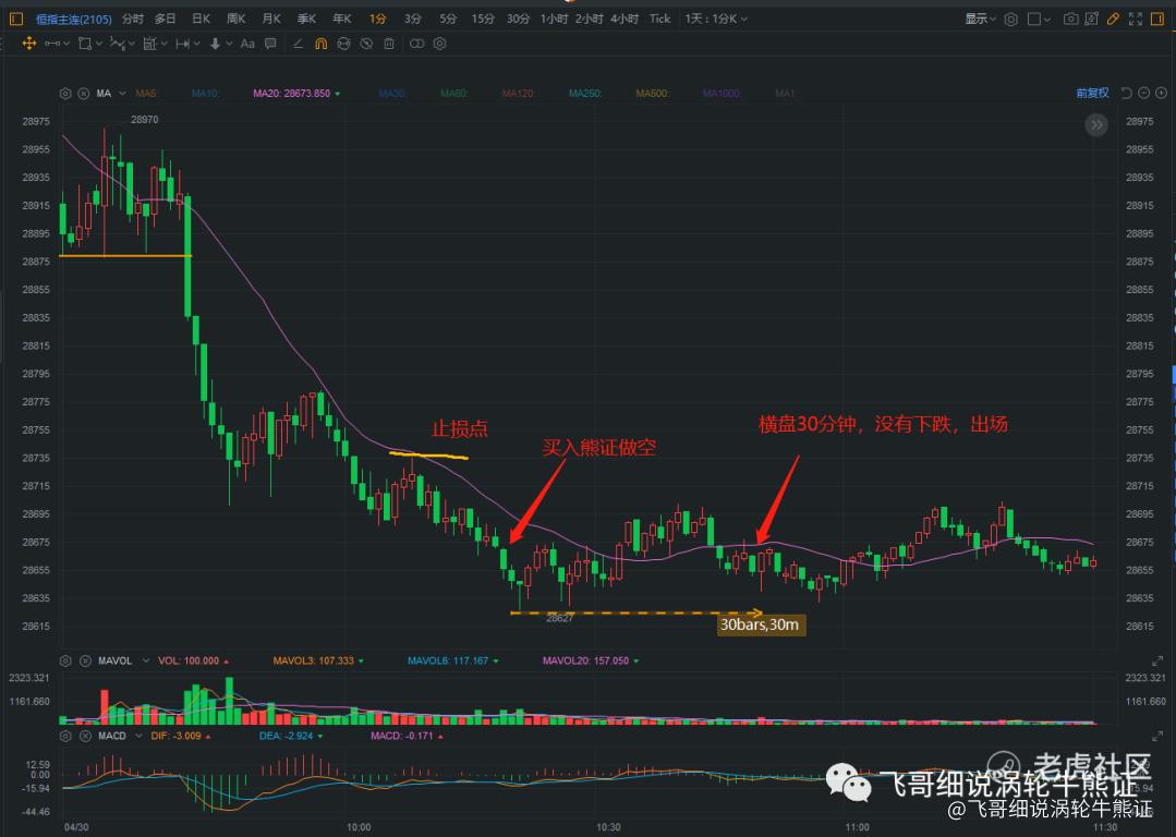 但也经常会发生误判,例如假突破,或者买入之后横盘,标的长时间在一个区间内小幅震荡。先不说造成的小幅亏损,就算是持有的这段时间,心情随着K线上上下下,对于交易员而言也是一种煎熬。与其忍受这种煎熬,不如止损出场,等待下一个“引爆点”。当然这个时间止损点设置因人而异,可以是设置30分钟,也可以是40分钟。