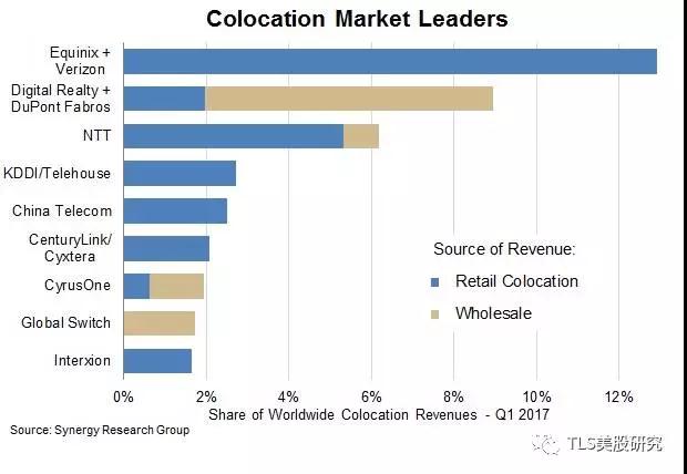 全球最大的零售colocation企业Equinix拥有10%的市场份额,远远领先无论是批发还是零售colocation的竞争对手。