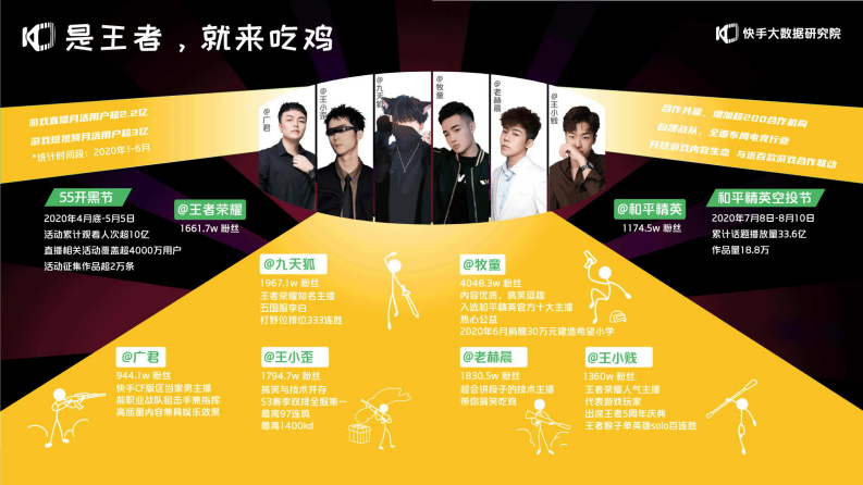 另一方面,公平普惠的原则下,游戏主播快速积累私域流量,有助于让IP和内容精准地触及不同圈层用户,也更适合新人草根主播的成长。去年5月,腾讯互娱光子工作室群在《和平精英》一周年活动期间公布全网十大游戏主播,其中快手游戏主播占到8席,正是这种生态活力的佐证。