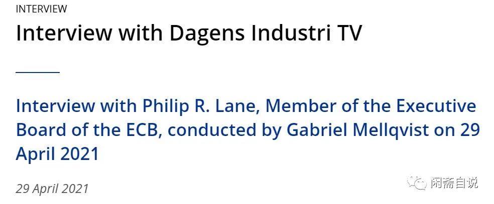 前言:2021年4月29日,欧洲央行执委会成员菲利普·R·莱恩(Philip R.Lane)接受瑞典Dagens Industri TV加布里埃尔·梅尔奎斯特(Gabriel Mellqvist)的采访。在采访中,菲利普·R·莱恩认为,欧洲央行在过去一年对欧洲经济复苏路径的预测工作非常准确,欧洲央行很好地履行了疫情下应当完成的三项重要工作——稳定市场、支持信贷供应以及降低整体融资成本。同时,其认为,疫情的经济影响是不均衡的,有些企业因疫情而重挫,但有些企业因疫情而取得重大发展,有些个人几乎未受影响,但有些个人却生活陷入困境。而对关于欧洲央行“救大企业”而“不救小企业和个人”的批评,其认为欧洲央行企业债券购买计划释放了商业银行向中小企业及家庭放贷的空间,因此,实际也等于“救了小企业及个人”。对于负利率,其认为负利率政策是欧洲央行有用且有价值的货币政策工具之一,各国有不同的经济环境,不能一概而论。而对于美联储的平均通胀目标制,其认为虽然有价值,但欧洲应该有自己的货币政策策略框架。对于央行数字货币,其表现冷淡,似乎这并不是一个多么有价值和创新的支付工具。本人翻译了该采访文字稿,仅供交流。