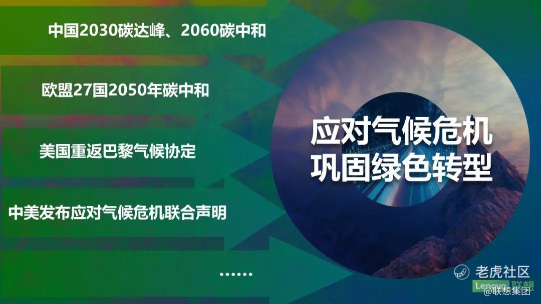 联想一直致力于通过数字化、智能化技术创新做低碳转型的先行者与技术赋能者,通过提质增效为联想自身以及各行各业的低碳转型注入绿色动力,更积极对外输出技术、服务与和解决方案,通过硬件与软件形成“软硬兼施”的合力,助力千行百业实现绿色低碳转型,为实现“2030碳达峰、2060碳中和”远景目标贡献力量。