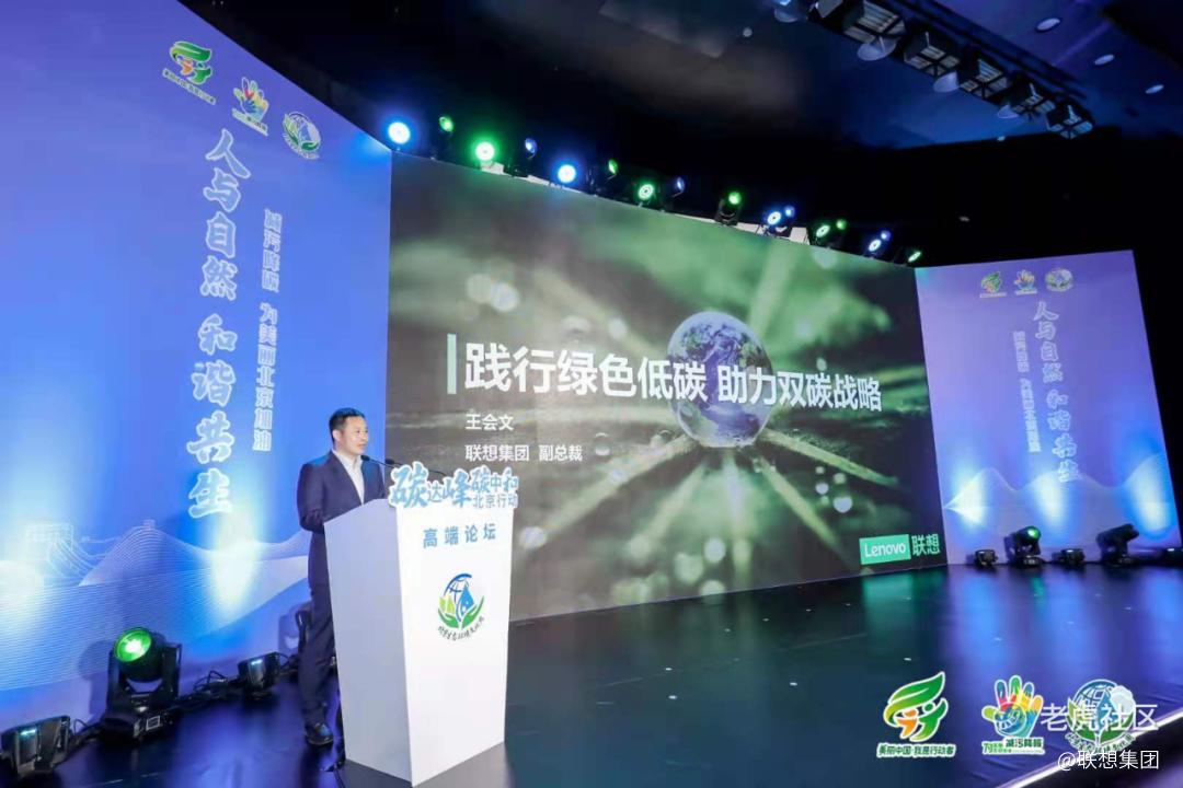 6月5日上午,北京市生态环境局在北京市规划展览馆举办了“人与自然和谐共生——减污降碳 为美丽北京加油”的环境日主题活动。联想集团副总裁,个人电脑及智能设备质量负责人王会文,代表联想参加了本次活动,并发表了题为“践行绿色低碳 助力双碳战略”的主题演讲,介绍了联想集团低碳计划、承诺及进展,并发起首都头部企业低碳行动倡议。