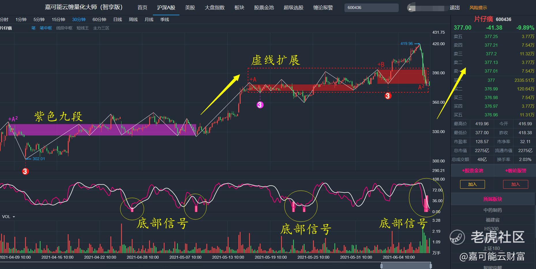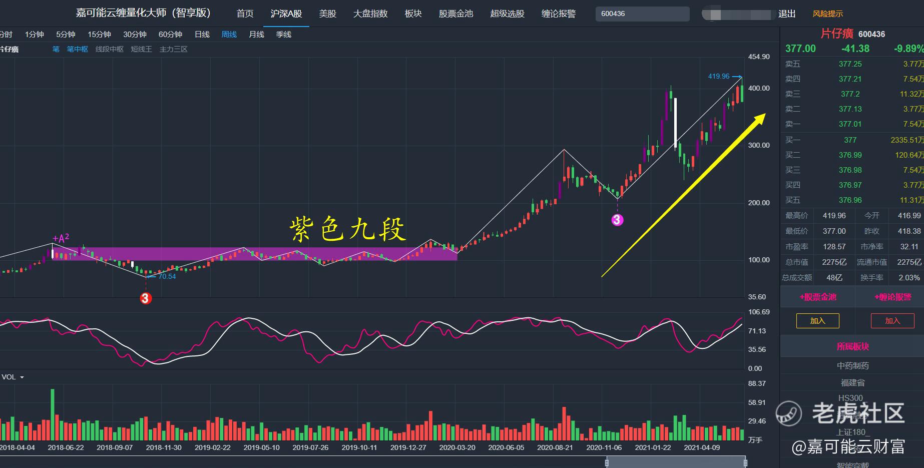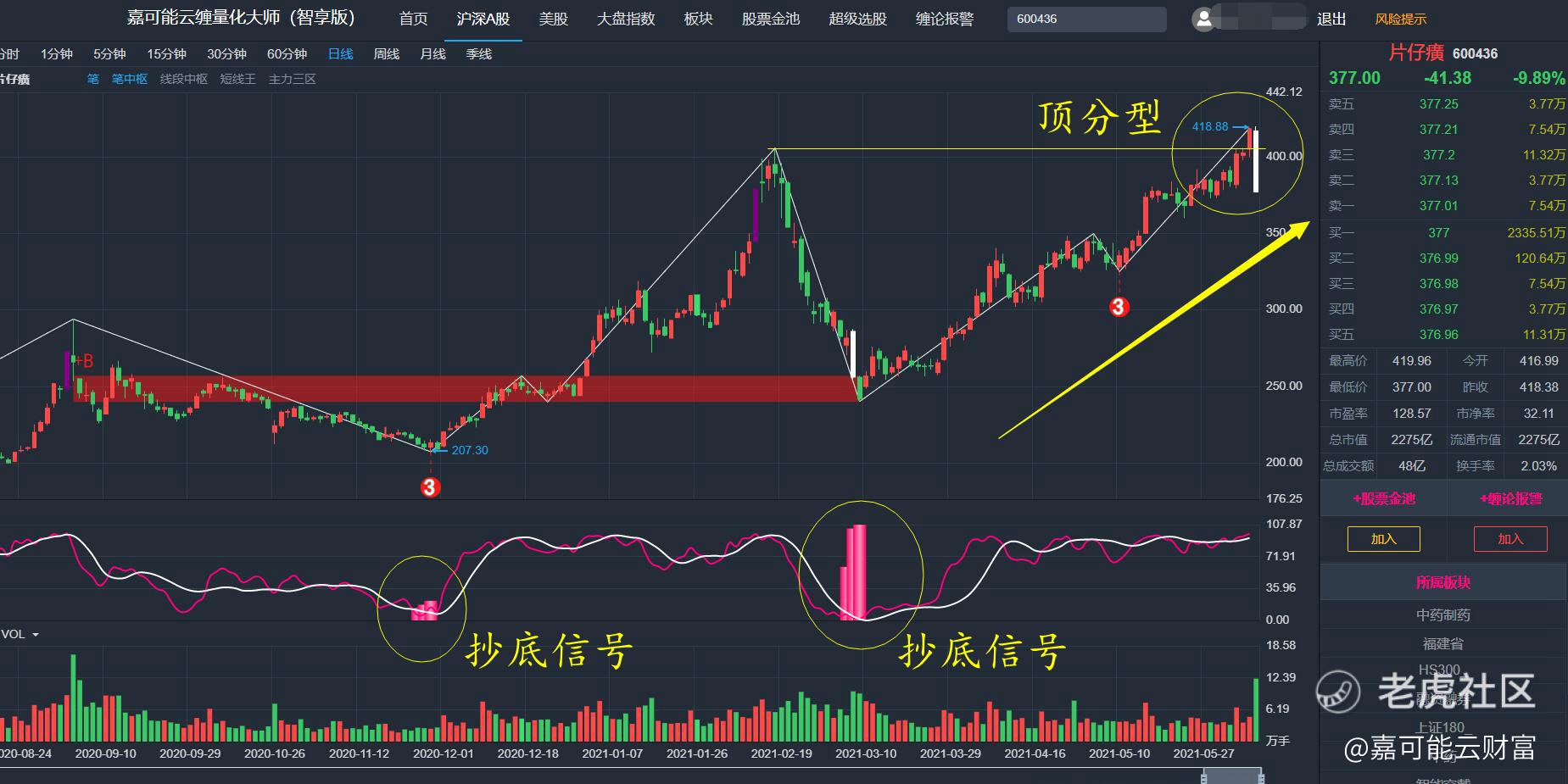 【嘉可能】片仔癀缠论K线分解与缠论短中线选股思考!