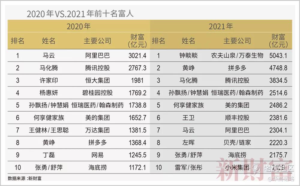 2021年,农夫山泉创始人钟睒睒以5000亿身家坐拥中国富豪榜首位,排名前十却看不见李嘉诚的影子。