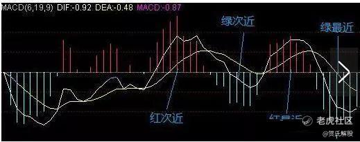 绿最近小于绿次近,通常表现做空的力量偏弱,即为底背离;