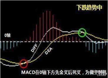 第二步:MACD在0轴下方先金叉,后死叉,空单入场(如果死叉仍在零轴下方,信号更为准确)