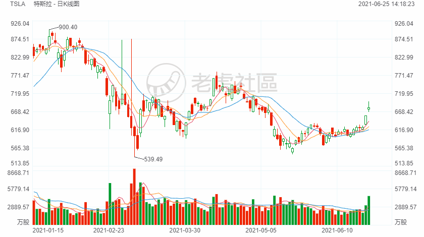 特斯拉股价周四在前一日大涨5%基础上再次上涨3.5%。相比之下,美股三大指数涨幅均未达到1%。