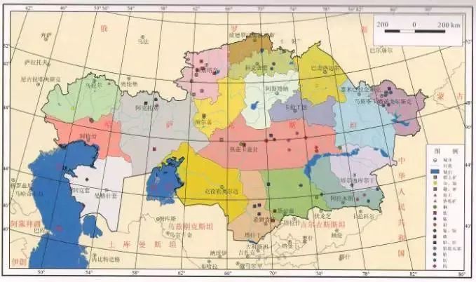 哈萨克斯坦矿产分布图