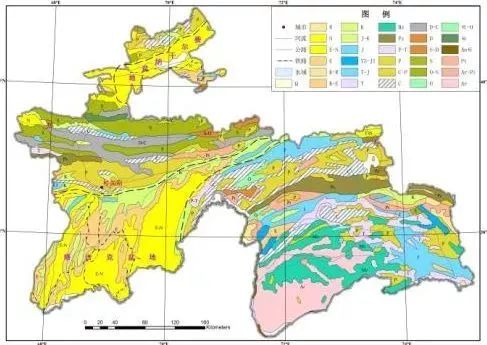 塔吉克斯坦的地质图
