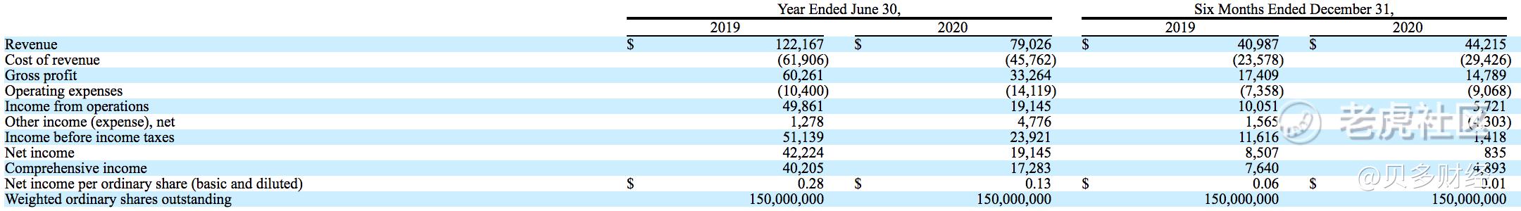 截至2019年6月30日的2018财年、2020年6月30日的2019财年以及截至2020年12月31日的2020财年上半年(对应自然年2020年下半年),Aspire的营收分别为1.22亿美元、7902.6万美元和4421.5万美元。
