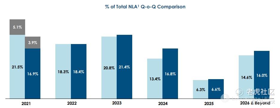 以加权平均租期(“WALE“)作为参考的话,公司将旗下在新加坡的办公楼、商场以及在国外市场的数据进行了分摊。其中以新加坡办公楼的 WALE 而言是 2.96 年、新加坡商场的 WALE 为 2.56 年、而国外的资产的 WALE 为 6.54 年。