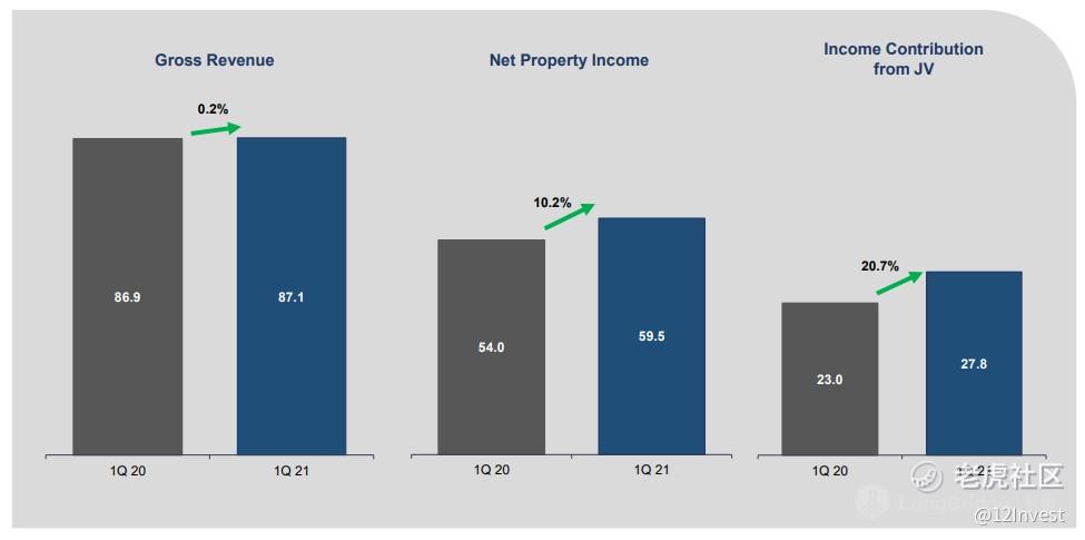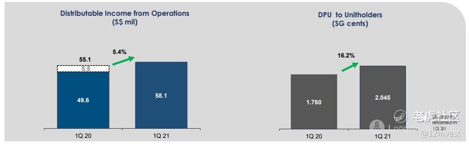 参考公司在 2021 财政年第一季度的表现来看,公司按年的营业额、NPI 以及来自于联营以及合资公司的盈利都有所提升。以 $新达产业信托.SG 整体办公楼的盈利来看,这次的增长部分来自于 21 Harris Street、477 Collins Street 以及 9 Penang Road 的贡献(作为比较,2020 财政年第一季度并无可参考数据)。另外,公司也有部分的一次性收入,因此才会导致整体的收入有所提升。