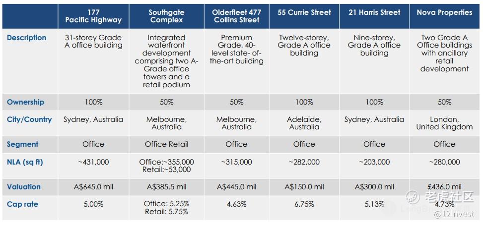 从中,我们可以看到部分的产业并不是公司 100.0% 持有的。比如说公司在 Suntec Singapore 中只持有 66.3% 的拥有权、One Raffles Quay、MBFC Properties、9 Penang Road、Southgate Complex、Olderfleet 477 Collins Street、Nova Properties 的拥有权都并没有超过 50.0%,因此公司只会将他们直接归纳为联营公司或合资公司,并只会记录他们的盈亏数据而已。