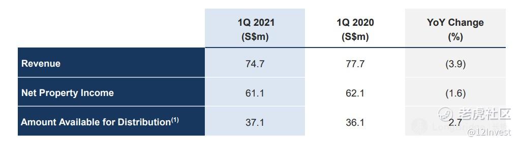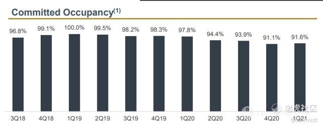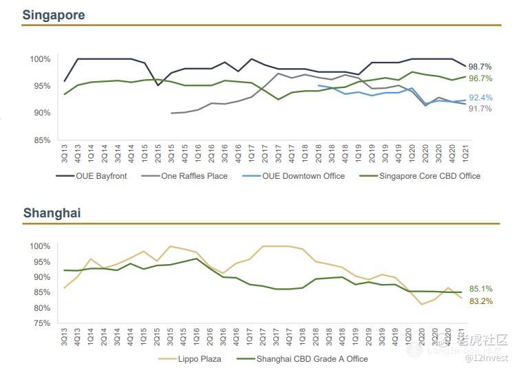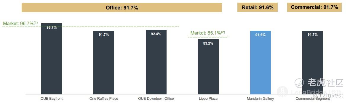 我们在前面忘记提到了公司出租率的问题了。目前来说,办公楼的出租率依然在 91.7%,虽然对比 2020 财政年第四季度降低了 0.8%,而将其对比新加坡的平均市场出租率为 96.7%,因此依然是有点低。