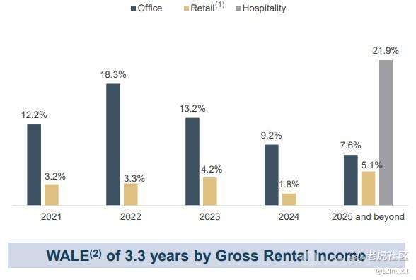 而以公司的加权平均租期来看,目前的平均值为 3.3 年。大家可以参考公司旗下的租期分布数据。