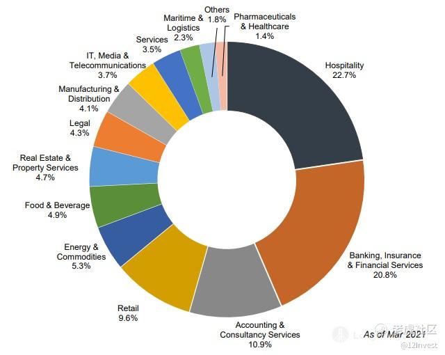 根据公司的租客数据来看,除了 22.7% 是属于主租约的收入,公司最大的其他客户类型主要是金融业、会计业以及零售业务。