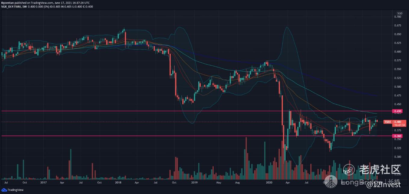 从股价走势中来看,$华联商业信托(TS0U.SI)$ $华联商业信托.SG 在市场崩盘时曾经下探至最低点的 0.280 新币;而在那之后公司的股价也曾经快速的反弹到 0.435 新币的价位。不过,近期来我们又看到了 $华联商业信托.SG 出现横盘的状态,并且在编写该文章时也收盘于 0.400 新币。