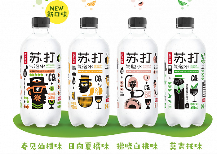 我们在《大品牌开卖气泡水,寻找细分卖点成关键》一文中也讨论过,在去糖化、低热量市场需求驱动下,气泡水的开发空间都在围绕口味与设计风格进行延展。无论是由周杰伦新歌带动起来的莫吉托口味,还是这两年成为食品饮料行业标配的白桃口味,农夫山泉气泡水都有“跟风”推出。