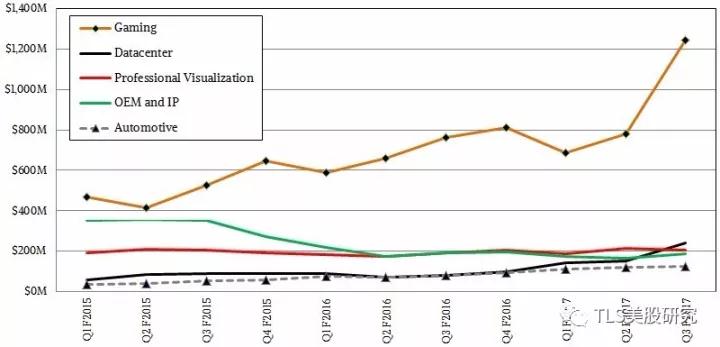目前来看,第四季度游戏收入趋势会持续上涨,因为很多在发行的新游戏会给GPU市场带来蓬勃生机,如10月发行的PC版《命运2》,11月发行的《决胜时刻》和《星际大战:战场前线II》。