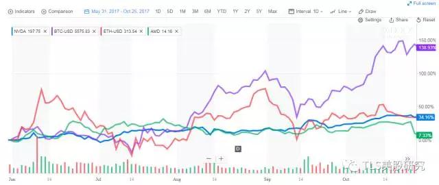 所以我们认为,英伟达数据挖掘最佳对象为较新货币,而不是比特币等大型加密货币。挖矿收入会随着新货币的出现而起伏。如下图所示,英伟达的股价不完全和比特币和莱特币同涨同跌。