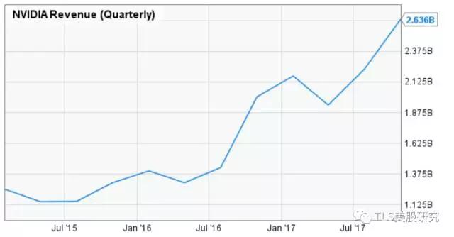 FY2018 3Q财报显示,英伟达每股收益$1.33超预期0.26美元, 总收入$26.4亿元超预期2.8亿美元。可观的增长使众多投资者欣喜若狂。长达9个季度的双超越以及股价的快速增长使英伟达持续着增长股的名号。对于第四季度,英伟达预计总收入额会达到26.5亿美元上下。