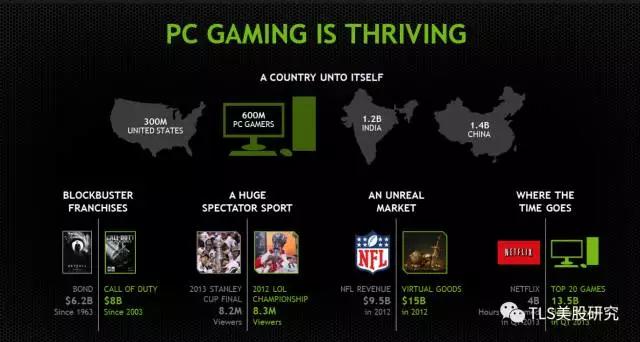 首先,英伟达最大的一个版块就是游戏。游戏在第三季度坐拥15.6亿美元收入,占总收入60%,与去年相比增长25%。