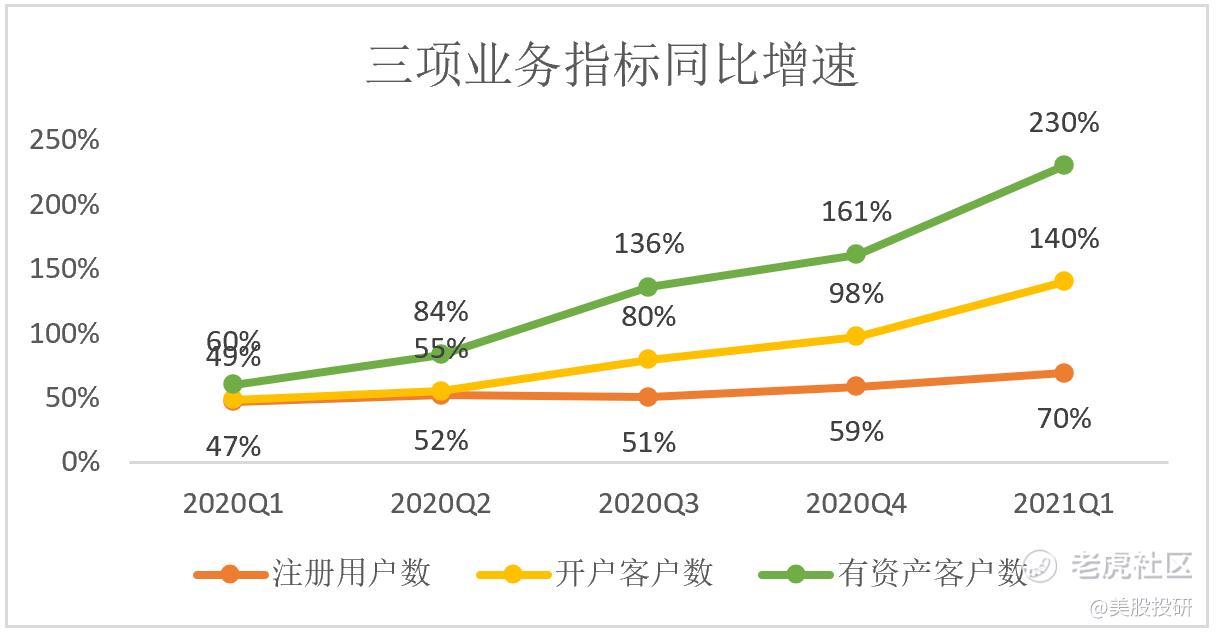 从2021Q1上述业务指标,不仅实现了同比大幅增长,同比增速的幅度还在扩大。基数越来越大,富途发展得越来快!
