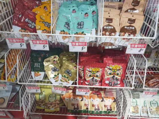 纵向货架之一,摆放坚果类产品,均价5元-6元(来源:明亮公司)