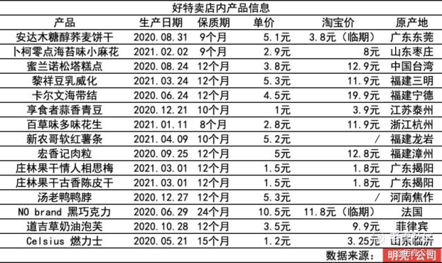 整体产品,价格较商超低很多,与淘宝比价发现,多数临期食品是淘宝非临期产品的25%-50%。零食仍是店里主打,零食占据了70%的品类,饮料占20%,10%是日用个护产品。在品牌上,虽然主打是进口特价,但真正进口商品占比较少,在购买的15件产品中只有两件是进口产品,其余产品均产自国内,且多数商品在淘宝上的搜索结果也相当少。