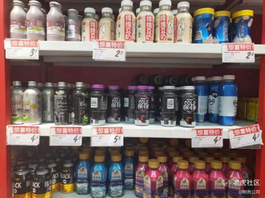 饮料区,豆奶、咖啡和功能饮料等,均价为3元-6元(来源:明亮公司)
