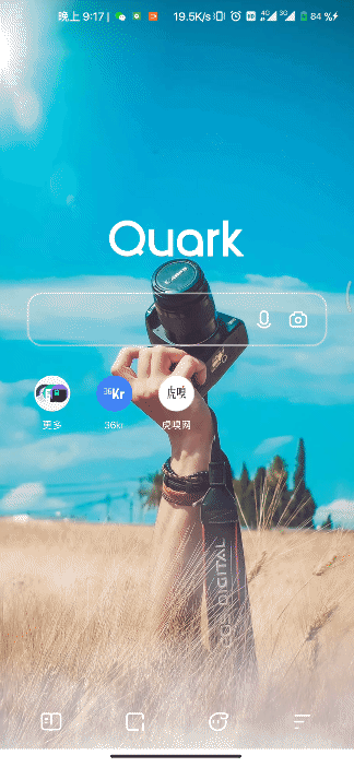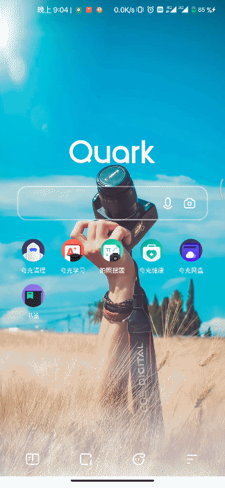 开启量子模式后,夸克首页的底栏仅剩下右下角的菜单按钮,整体更加简洁,适合对简洁有超高要求的用户。