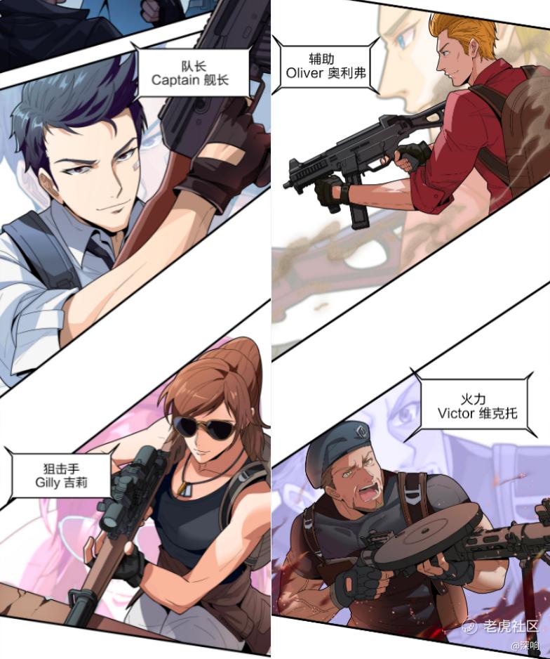 5月1日,首部官方漫画《和平精英:描边战神》上线。这款每周六更新的周更漫画,让《和平精英》这个竞技冒险世界,展现出了更加清晰、多样的轮廓。结合吉莉动画和官方漫画,玩家可以逐渐清楚地了解到更多明星四人小队的成员结构与故事。核心线索人物,除了“狙击手”吉莉以外,另外三名成员分别是“队长”舰长(Captain)、“辅助”奥利弗(Oliver)和“火力”维克托(Victor)。
