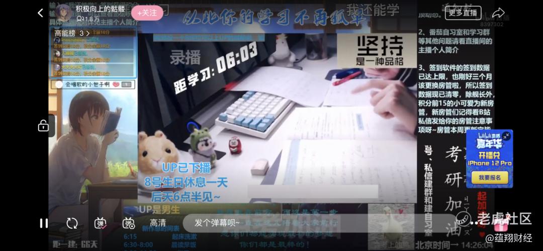 在其他平台,讲段子、摇手花、搞吃播……总之,只有才艺够突出,直播间才能留住人。但是在B站的直播自习室里,只要足够自律或优秀,气氛到位了,就能获得粉丝关注。