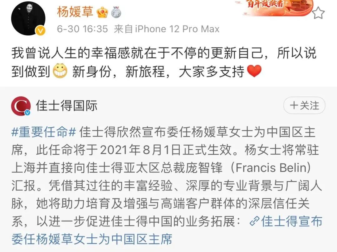 杨女士……凭借其过往的丰富经验、深厚的专业背景与广阔人脉,她将助力培育及增强与高端客户群体的深层信任关系,以进一步促进佳士得在中国的业务拓展。