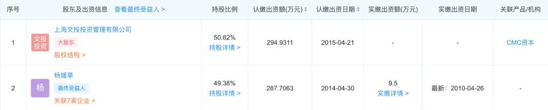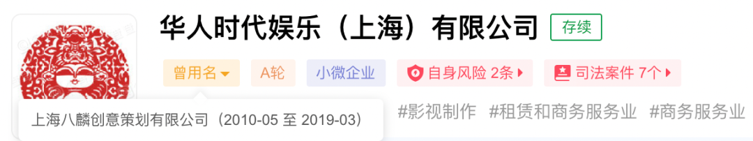 ▲上海八麟文化现改名为华人时代娱乐有限公司,由杨媛草本人占股51.49%,剩下占股48.51%的上海文投管理有限公司的实际控制人也是黎瑞刚。
