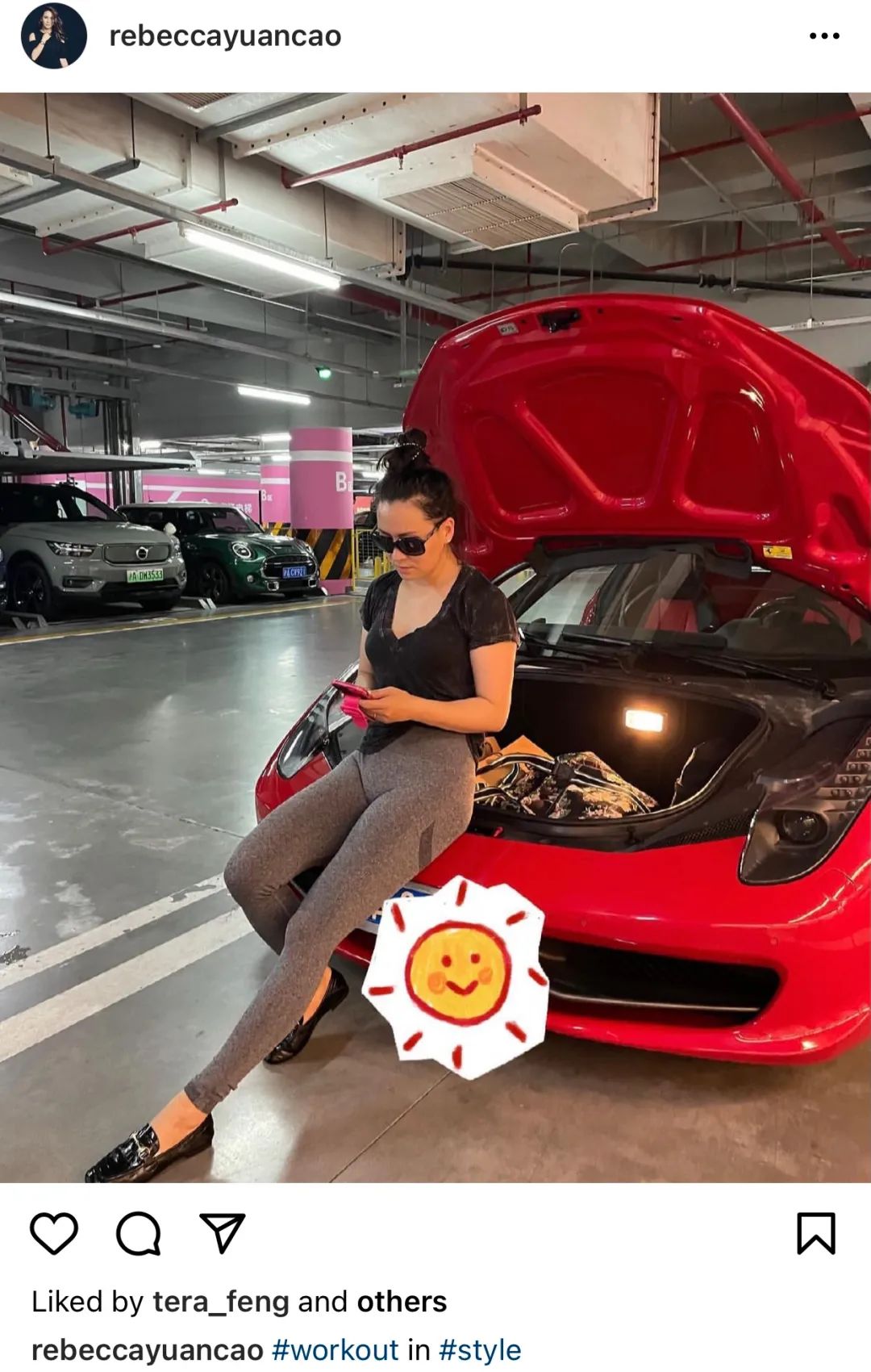 ▲座驾是国内售价四五百万的法拉利458,脚踏Gucci鳄鱼压纹的乐福鞋。