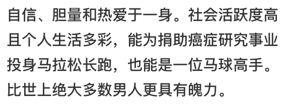 在其中,她展现了事业有成的精英女性的典型生活方式,精力充沛,热爱运动与旅行,有着上层社会人士普遍认可的兴趣爱好,比如马球、滑雪等等。