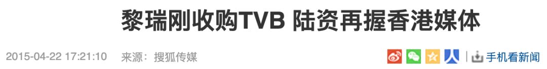 对黎瑞刚而言,他的野心仍不止于此。15年下半年,他彻底离开了亲手打造多年的SMG,算是功成身退,转头开启了全新的征程,加速了他构建媒体帝国的步伐,收购TVB(是的,就是我们小时候看了无数港剧的源起之地,原先由邵逸夫先生创办的香港无线电视台,有关邵先生的传奇人生,这里可回顾),整合华人文化。