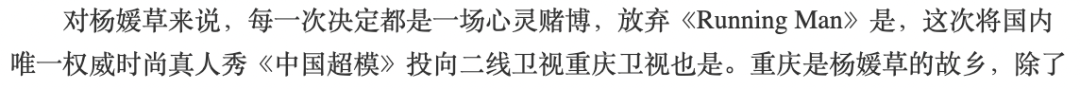 ▲再比如错误预判了形式,包括放弃《Running Man》和执意将《中国超模》投向二线卫视。