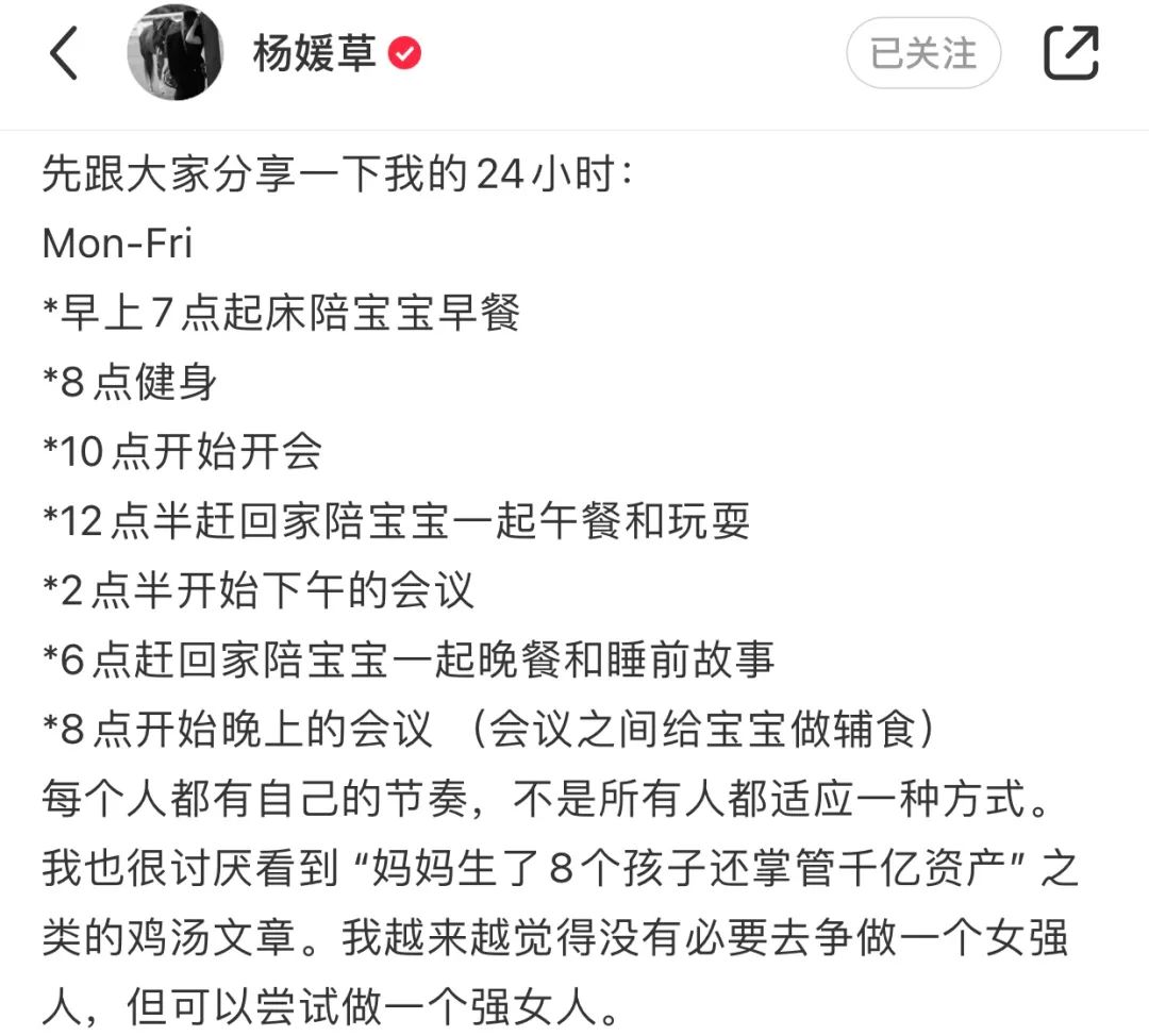 在三十而立的年纪,杨媛草已经领先同龄人太多太多。虽然她常自谦说自己除了才华和一点姿色一无所长,但才华、美貌加上勤力,已经是普通人望尘莫及的巨大财富。