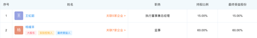 ▲当年杨媛草出国留学的钱包括母亲从朋友那借来的款项(这里的王虹懿,上文有提到,就是杨媛草的母亲,也是她而今商业版图的重要参与者,资料均来自公开可查的文件,图片来源企查查)。