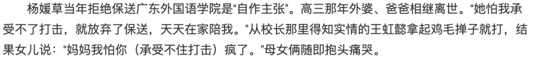▲出自2012年《重庆晨报》,杨媛草母亲王虹懿的自述。